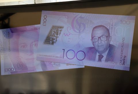 Theo một bảng điểm của Bộ trưởng Bộ trưởng Fabian Picardo bài phát biểu của Gibraltar, một 100-pound tờ tiền giấy mới sẽ được đưa vào lưu thông trong nửa đầu của năm 2016. Các lưu ý sẽ được ngày 21 tháng tám năm 2015, một trăm năm ngày sinh của Sir Joshua Hassan. Biệt danh "Salvador" (Đấng Cứu Thế), Sir Joshua là giám tướng cho tổng cộng 22 năm và được ghi như là kiến trúc sư quan trọng nhất của di chuyển Gibraltar của hướng tự quyết. Việc thiết kế này, các mệnh giá 100 bảng Anh đầu tiên được in trên chất nền polymer, mang một bức chân dung của Nữ hoàng Elizabeth II ở một bên và một bức chân dung của Sir Joshua trên khác.